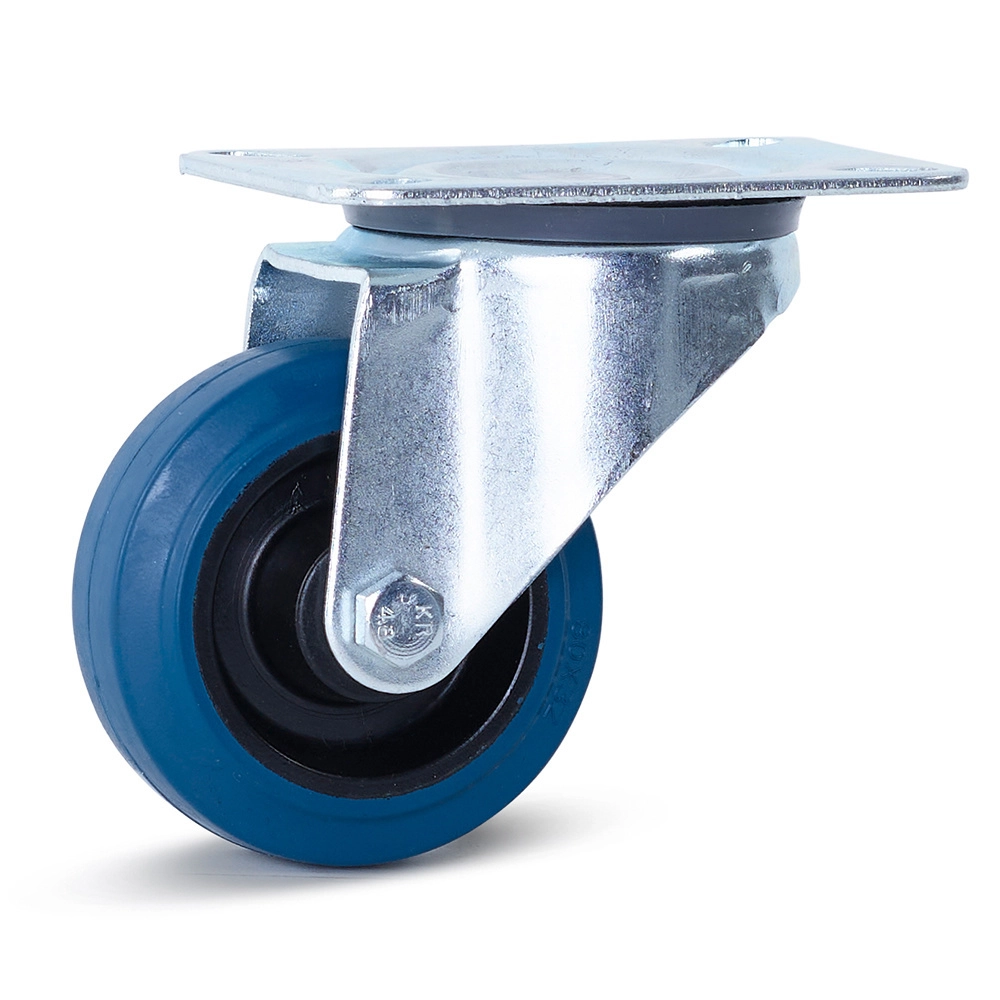 Blaue elastische Gummi-Lenkrolle mit Oberplatte - 80mm - 100kg