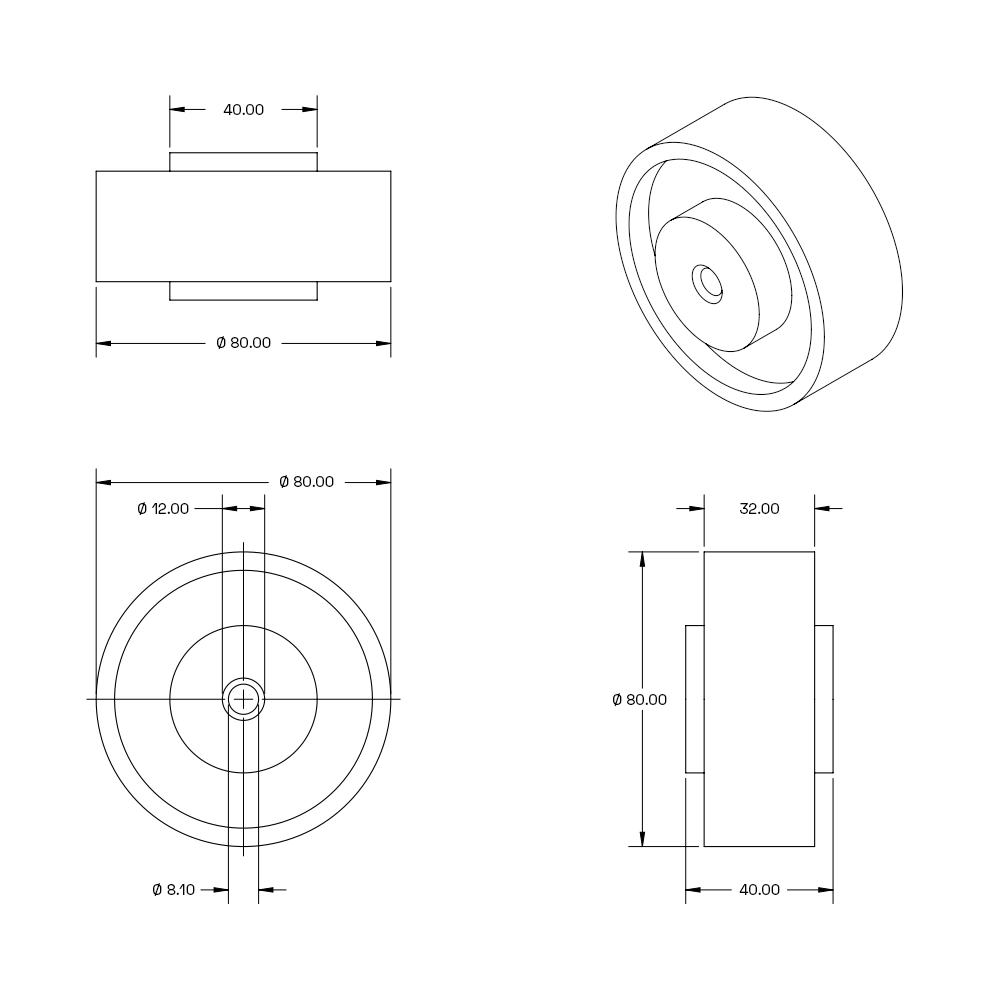 80 mm lose elastische Gummiräder, Radkörper aus Nylon
