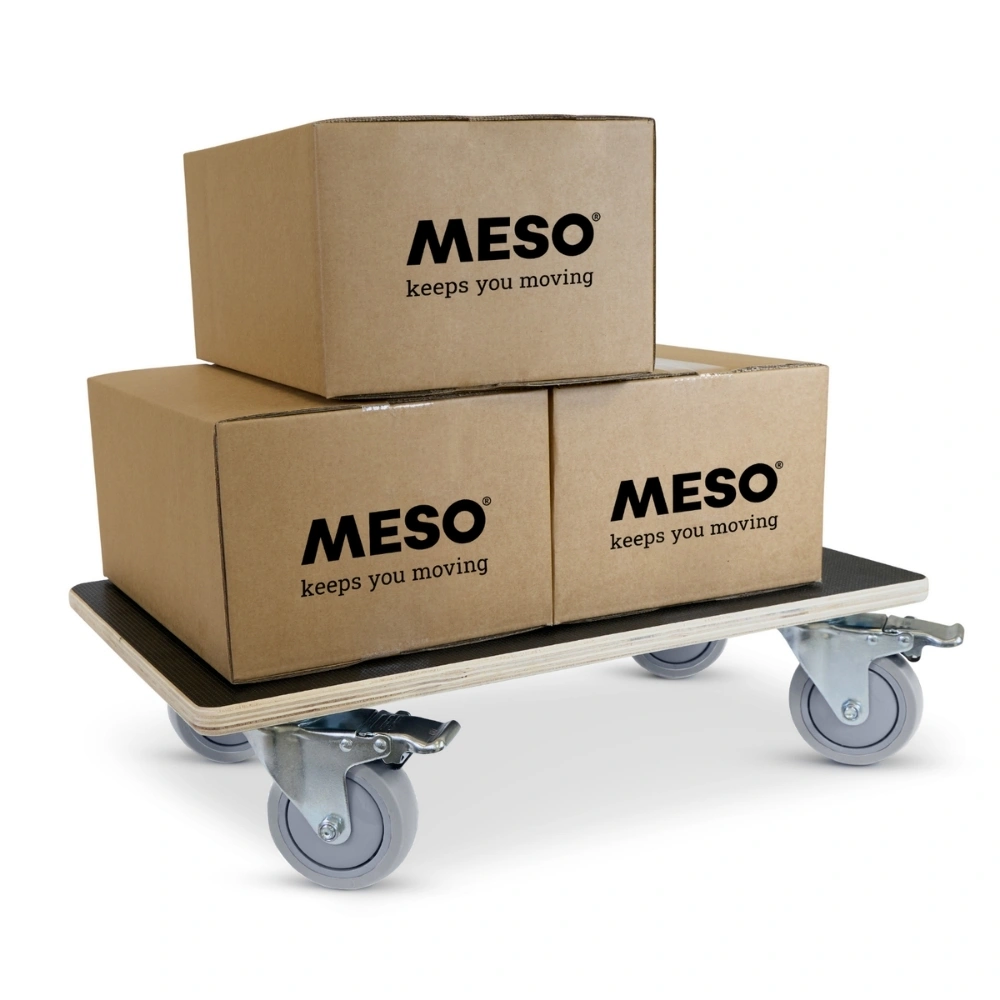 Möbelroller mit schwingungsdämpfenden Gummirädern, vier gebremsten Lenkrollen, 575x350mm und einer Tragfähigkeit von 350kg.