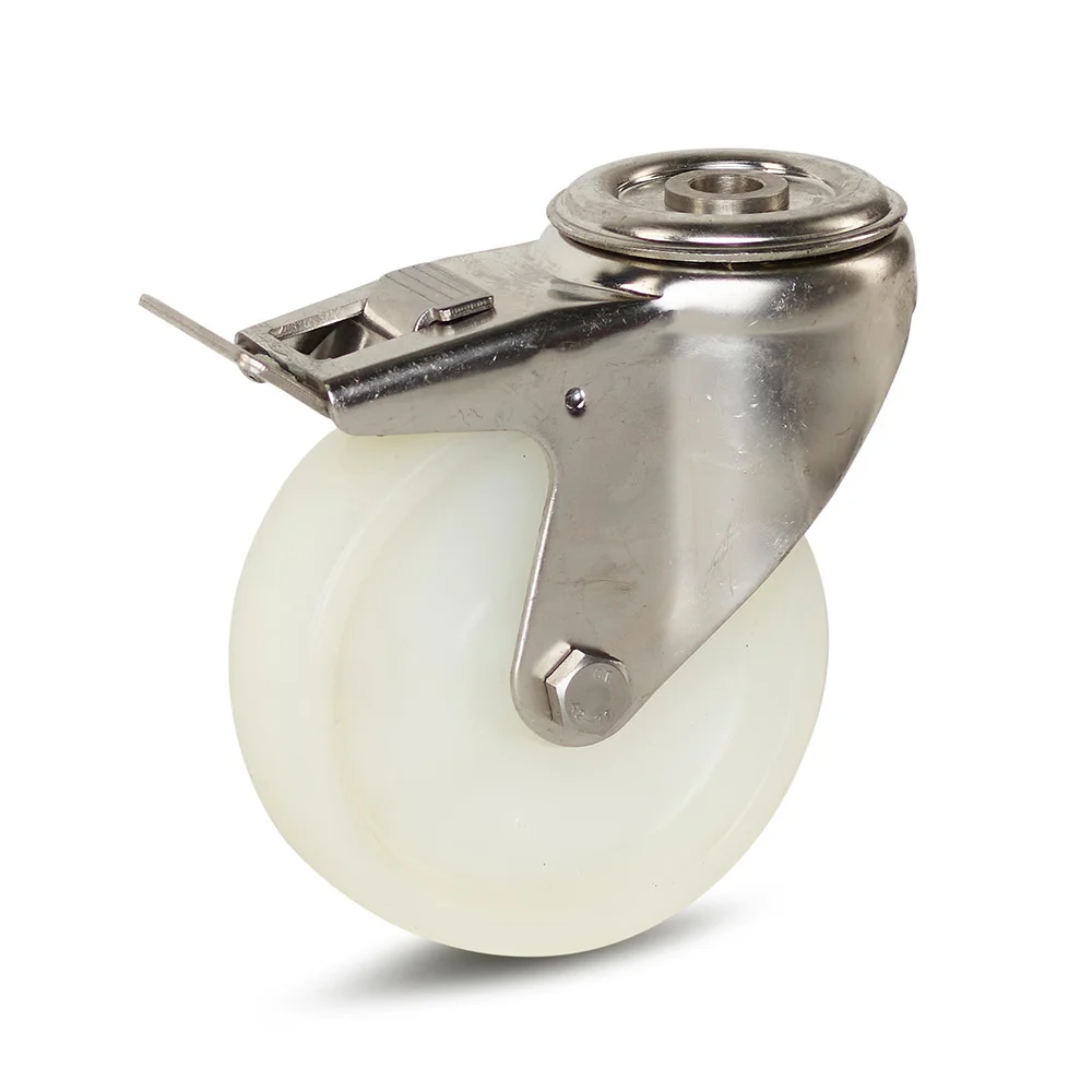 100 mm Nylon Edelstahl Lenkrolle mit Feststeller - RNY6-100G