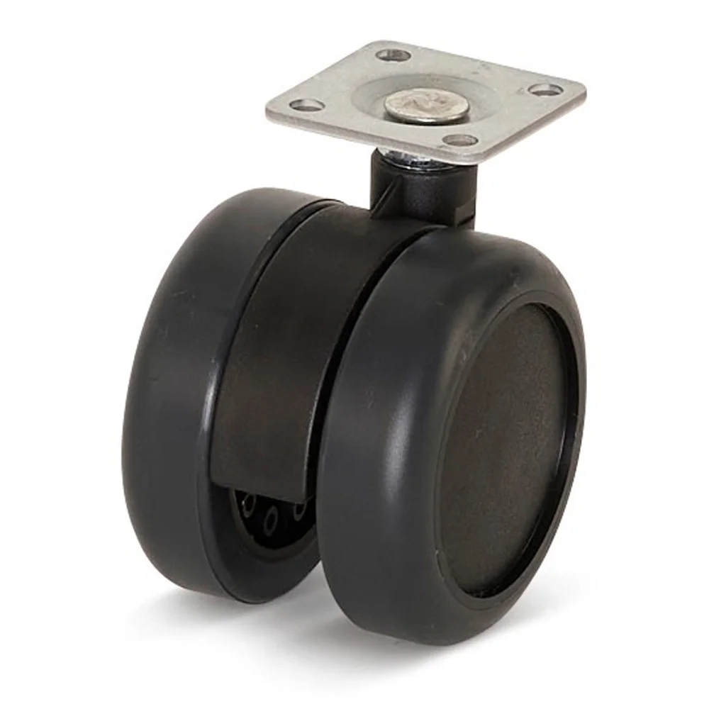 Möbelrad oder Stuhlrad mit PU-Lauffläche und 60mm Durchmesser. Wird mit einer Platte mit den Maßen 36,5x36,5mm befestigt. Die Tragfähigkeit beträgt 50 kg. Ausgestattet mit Gleitlager in Kombination mit umweltfreundlichem Fett.