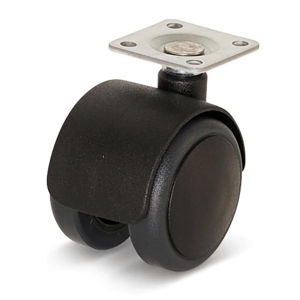 Möbelrad oder Stuhlrad mit Kappe, PU-Lauffläche und 50mm Durchmesser. Wird mit einer Platte mit den Maßen 36,5x36,5mm befestigt. Die Tragfähigkeit beträgt 50 kg. Ausgestattet mit Gleitlager in Kombination mit umweltfreundlichem Fett.
