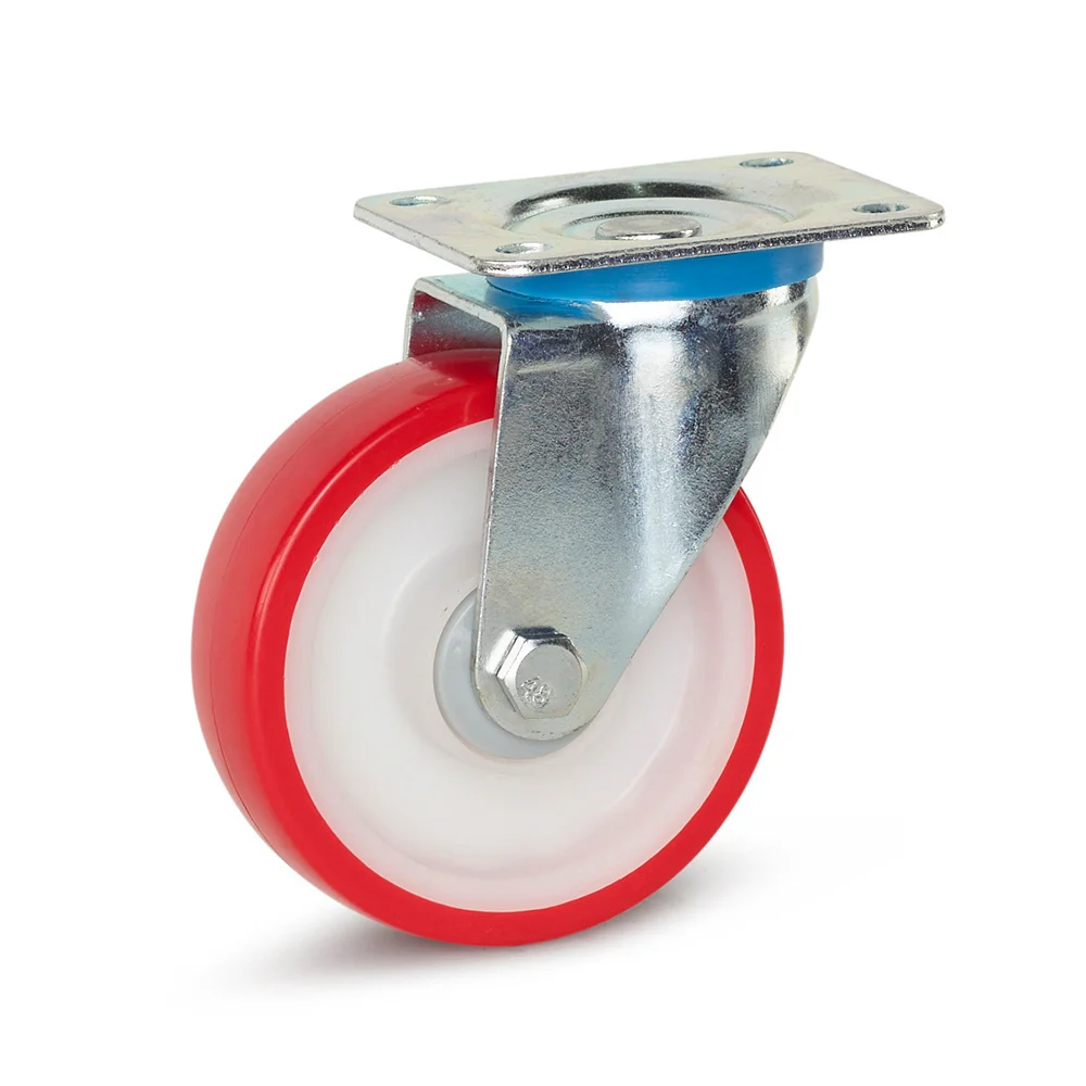 PU-Rollen sind mit PU-Band ausgestattet und eignen sich sehr gut als Rollen für alle Anwendungen, bei denen schwerere Nutzlasten erwünscht sind. Die Räder sind verschleißfest, geeignet für Temperaturen von -20 bis 80 °C, und beständig gegen Feuchtigkeit und die meisten Reinigungsmittel. Sie hinterlassen keine Markierungen auf dem Boden und die Härte liegt zwischen der von Gummi-Rädern und HartplastikRädern.