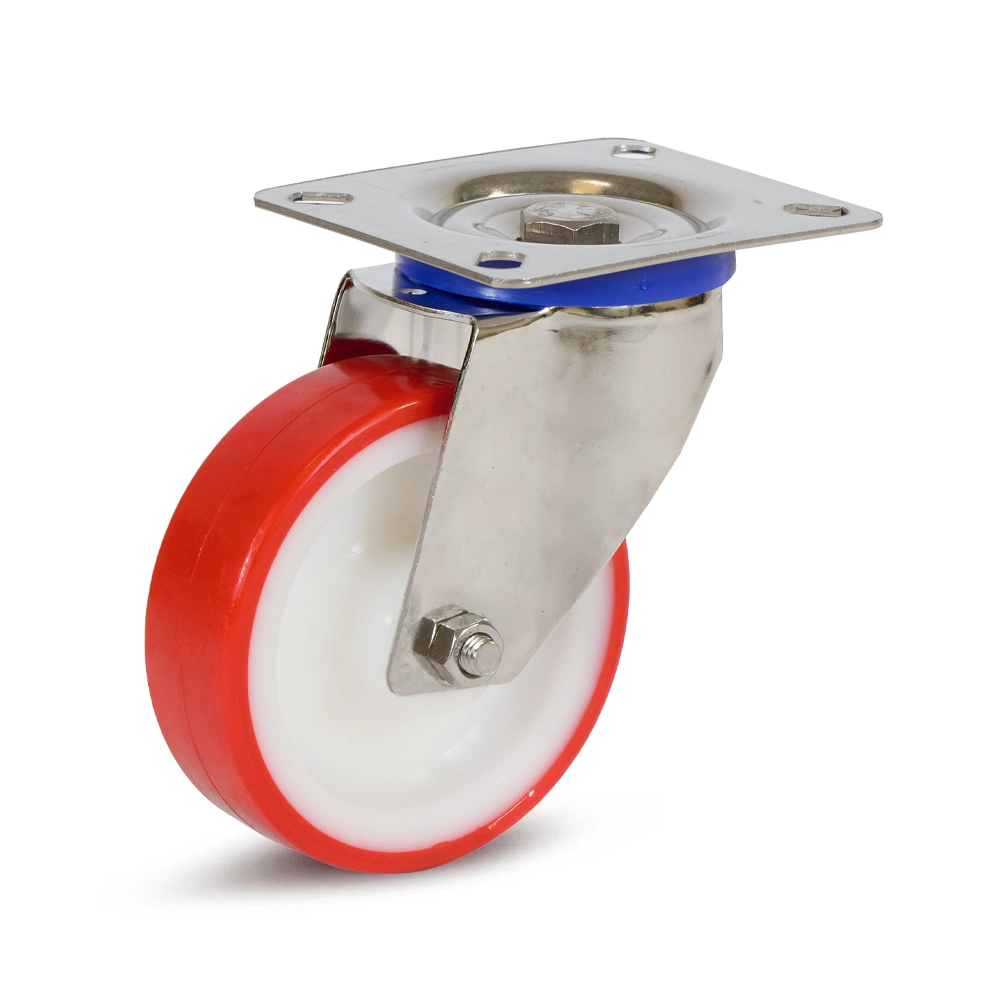 Spezifikationen für: PU-Edelstahl-Lenkrolle mit Kopfplatte - 100mm - 120kg - A
