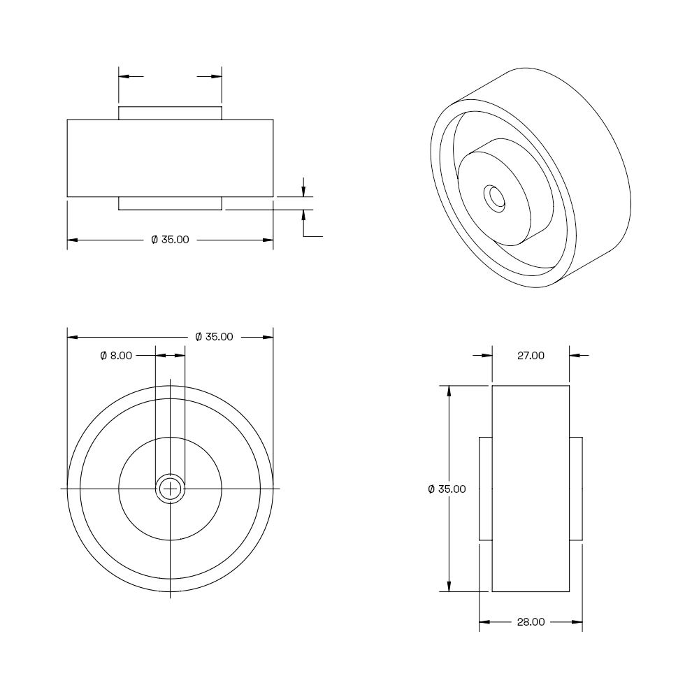 Dieses kompakte PU-Rad mit einem Durchmesser von 35 mm bietet eine erstaunlich hohe Tragfähigkeit von 100 kg. Das Rad besteht aus strapazierfähigem Polyurethan (PU) und ist in elegantem Schwarz gehalten. Mit seiner Kombination aus Festigkeit und geringer Größe ist dieses Rad perfekt für Anwendungen geeignet, bei denen nur wenig Platz zur Verfügung steht, aber dennoch ein fester Halt erforderlich ist. Ideal für leichte Transportwagen, Kleinmöbel und andere mobile Lösungen.
