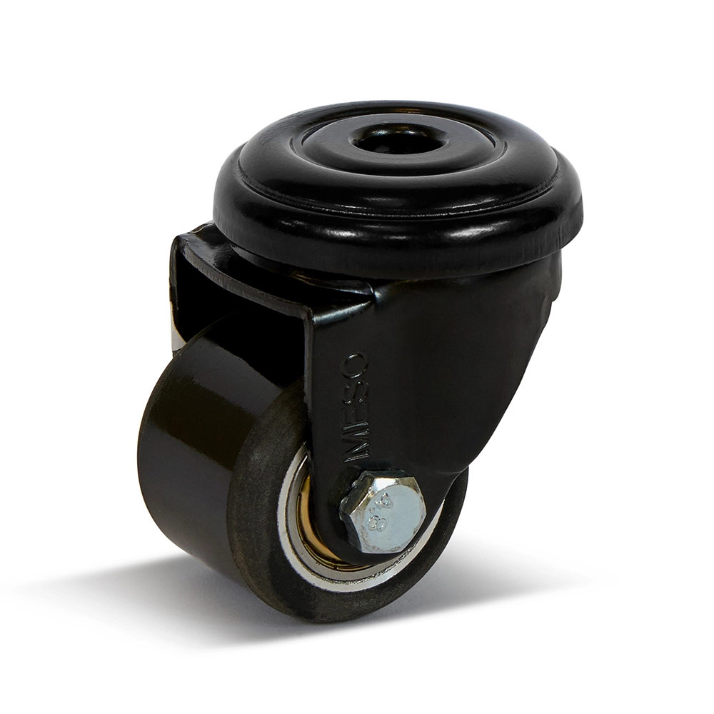 Diese 35mm PU-Lenkrolle verfügt über ein zentrales Befestigungsloch, das eine einfache und schnelle Montage ermöglicht. Trotz ihrer kompakten Größe bietet die Rolle eine Tragfähigkeit von 100 kg. Der hochwertige schwarze PU-Reifen sorgt für einen leisen und reibungslosen Lauf, während die glatte Oberfläche das Rad sowohl für funktionelle als auch für dekorative Anwendungen geeignet macht.