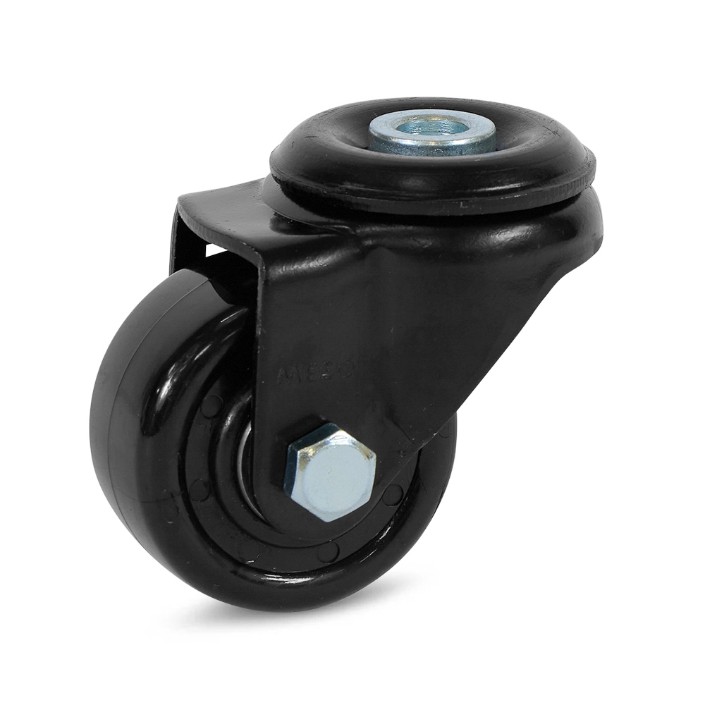 Schwarze Nylon-Lenkrolle mit zentralem Loch - 50mm - 150kg