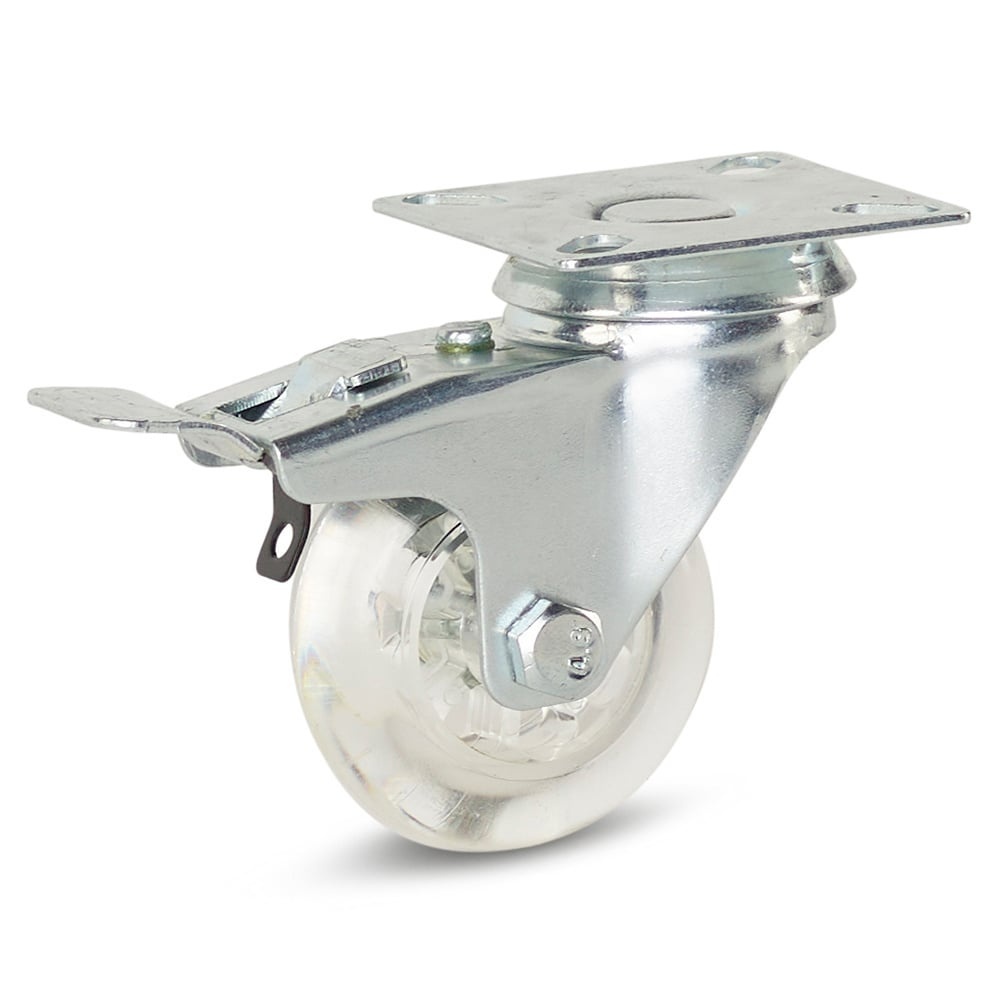 Transparente Möbel-Lenkrolle gebremst mit Kopfplatte - 50mm - 50kg
